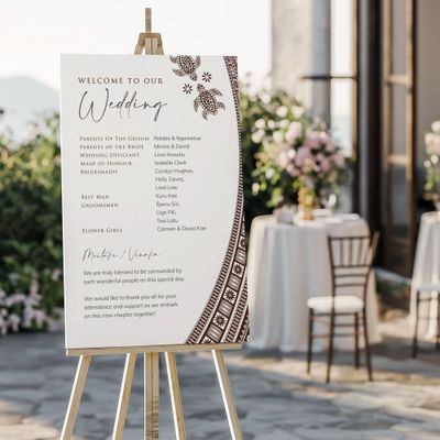 This foamboard sign offers a heartfelt message with elegant simplicity, incorporating the turtle motif and masi design to honour their memory with quiet respect.
